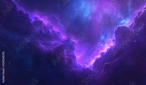 Fototapeta premium Vivid purple and blue nebula clouds in space with sparkling stars.