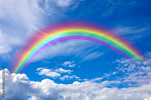 Naklejka premium Vivid rainbow arching across the sky, showcasing a full spectrum of colors...