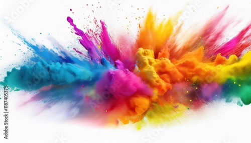Fototapeta premium Vivid Rainbow Explosion in Holi Festival A Spectacular Display of Color Powder Against a Wide Panorama Background.