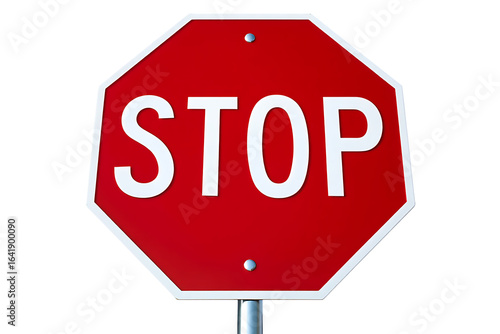 Obraz premium Vivid red octagonal 3D stop sign with crisp white text and border,...