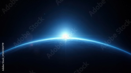 Obraz premium Vivid space exploration artwork showcasing Earth’s glowing blue sphere,...
