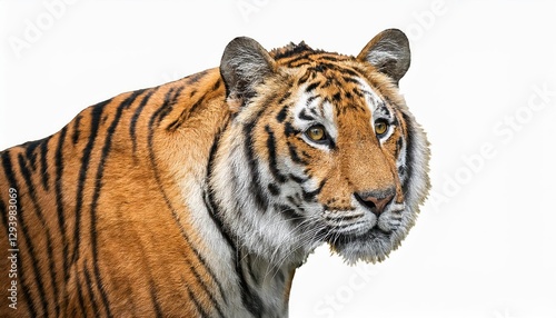 © netsay, Fototapeta premium Vivid Striped Majesty A Solitary Tiger Frozen in MidStare Against a Translucent Backdrop, Embodying Power and Grace with Its Vibrant Fur and Intense Eyes, Perfect for Digital Art, Home Decor, or