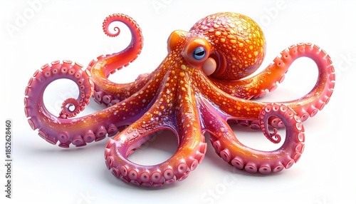 © Almarkha, Fototapeta premium Vivid, stylized octopus with red-orange skin on white background