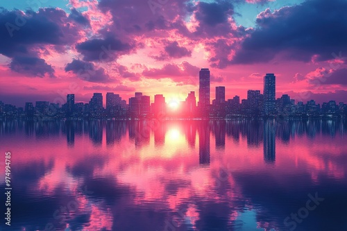 © Interior Stock Photo, Fototapeta premium Vivid sunset reflecting on a cityscape