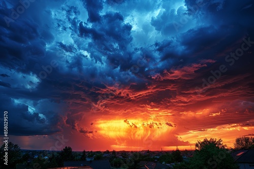 Obraz premium Vivid Sunset with Dramatic Storm Clouds