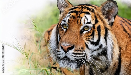 © netsay, Fototapeta premium Vivid Tiger Wildlife Drawing Realistic Portrayal of Majestic Bengal Cat in Stunning Detail, Capturing the Power and Grace of the King of the Jungle.