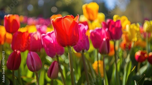 © Emin, Fototapeta premium Vivid tulips on a sunny holiday