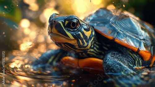 © Alexander Chaykin, Obraz premium Vivid Water Turtle Amidst Tranquil Pond