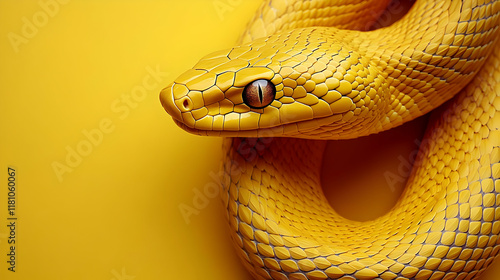 © Siasart Studio, Fototapeta premium Vivid Yellow Snake Coiled Elegantly on a Matching Background Showcasing its Scales.