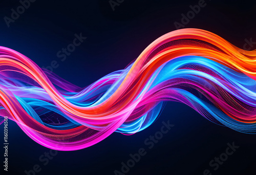 © Nuraya, Naklejka premium Vividly Colored Abstract Wavy Patterns on Black Background Creating Striking Visual Dynamics