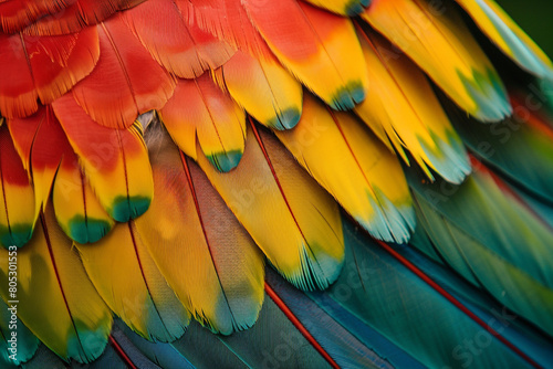 Obraz premium Vividly colored bird feathers, a close-up that speaks to the richness of...