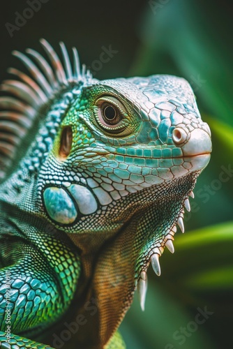 Fototapeta premium Vividly colored close-up image of a lizard, showcasing its scales and features.