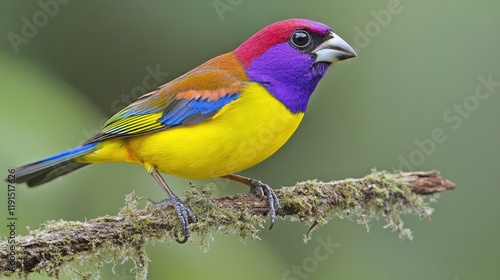 © Penatic Studio, Fototapeta premium Vividly Colored Tropical Bird Perched on Branch