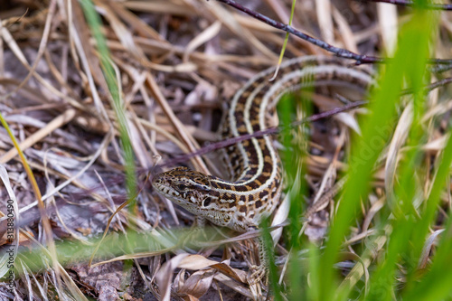 Fototapeta premium Viviparous lizard among dry grass