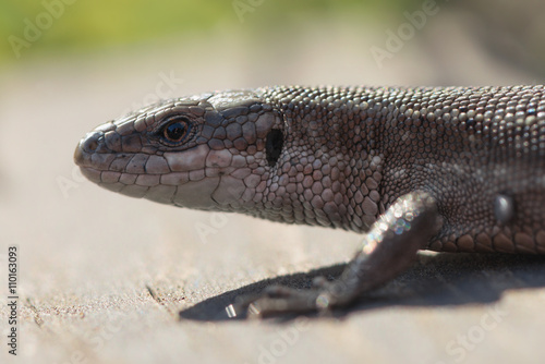Naklejka premium Viviparous lizard or common lizard, Zootoca vivipara sunbathing