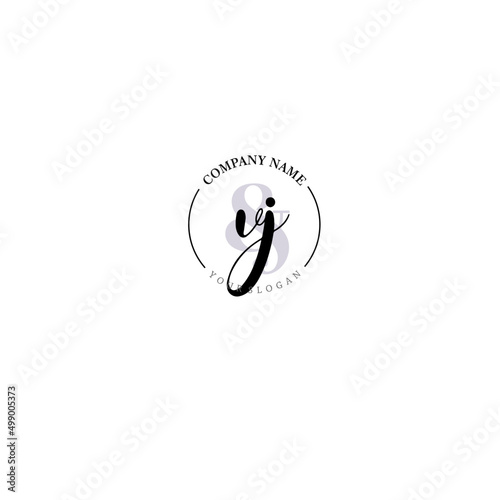 © Rensi, Obraz premium VJ Initial letter handwriting and signature logo. Beauty vector initial logo .Fashion boutique floral and botanical