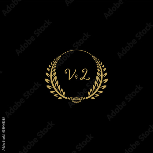 © desi, Naklejka premium VL beautiful feminine and elegant wedding monogram initial logo with circle floral gold