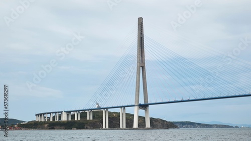 © Довидович Михаил, Obraz premium Vladivotok bridge. View from the moving ferry.