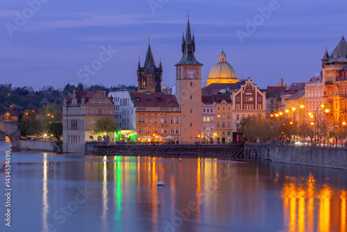 © pillerss, Fototapeta premium Vltava River and Old Town Water Tower in Prague Czech Republic