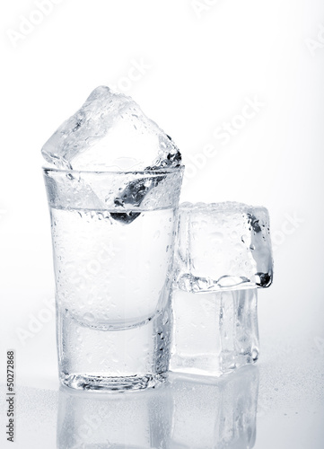 © evgeeenius, Obraz premium Vodka shot with ice cubes