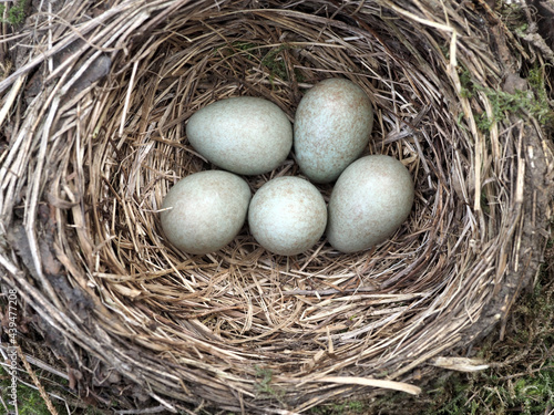© Pixelmixel, Obraz premium Vogelnest mit 5 Eiern