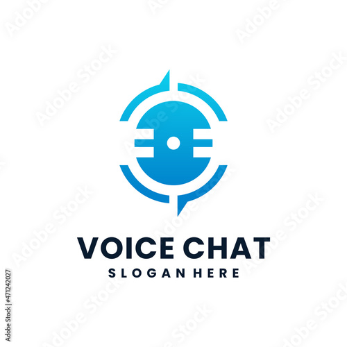 Obraz premium Voice chat logo vector with microphone and bubble chat symbol combination.