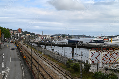 Fototapeta premium Voies de chemin de fer et port de la ville espagnole d'Avilès