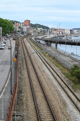 Fototapeta premium Voies de chemin de fer et port de la ville espagnole d'Avilès