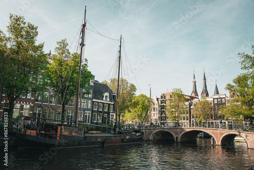 Fototapeta premium Voilier stationné dans un canal à Amsterdam