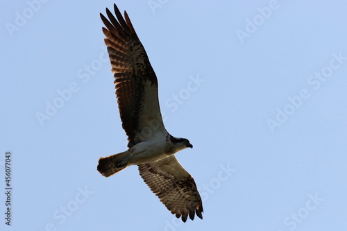 Fototapeta premium vol plané de balbuzard pêcheur dans un ciel bleu pâle