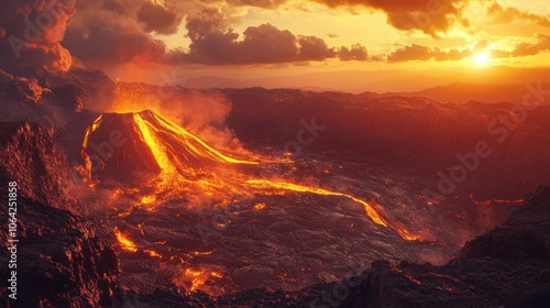 © Aulia, Fototapeta premium Volcanic Eruption at Sunset
