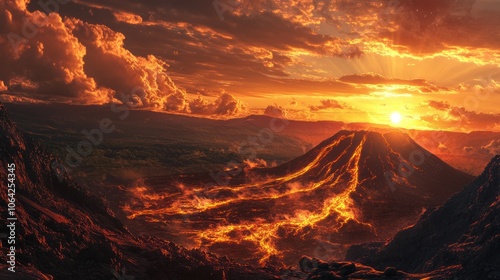 © Aulia, Fototapeta premium Volcanic Eruption at Sunset