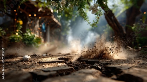 © studio clever, Fototapeta premium Volcanic Eruption Damaged Street. Generative AI