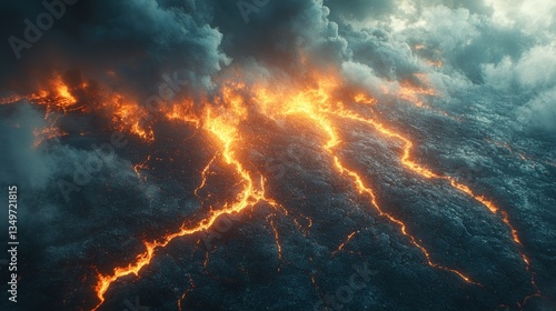 © RONNY, Fototapeta premium Volcanic eruption, fiery landscape