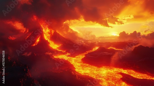 © Charlie Khan, Obraz premium volcanic lava flow background with molten texture