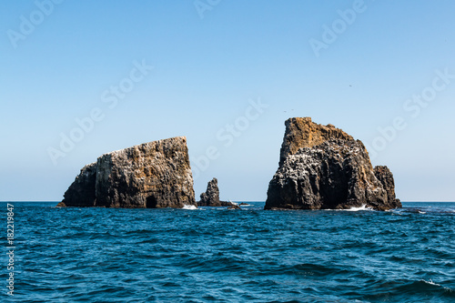 © sherryvsmith, Fototapeta premium Volcanic rock formations with a sea cave at East Anacapa Island in Channel Islands National Park off the coast of Ventura, California.