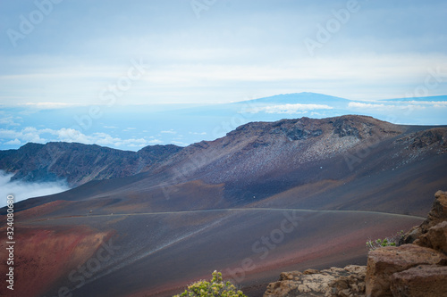 Fototapeta premium Volcano crater area, Haleakala, Maui, Hawaii - The island of Hawaii, Big Island in distance