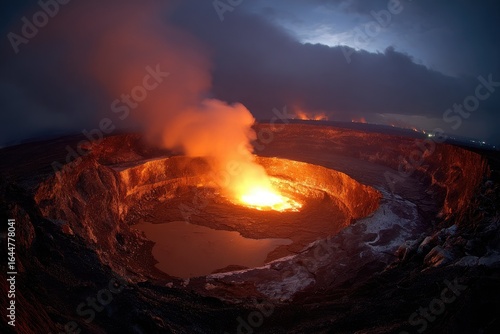© Jufri, Fototapeta premium Volcano crater at night, glowing lava