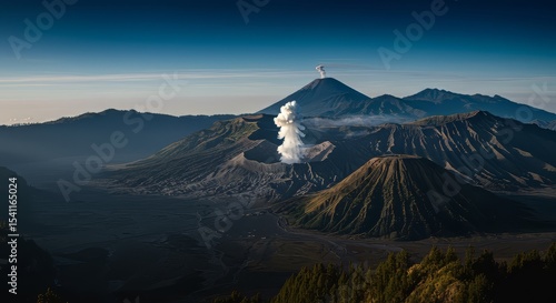 © Zainul, Fototapeta premium Volcano Eruption with Mountains Landscape