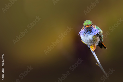 © Carlos, Naklejka premium Volcano hummingbird perched on branch with blurred background