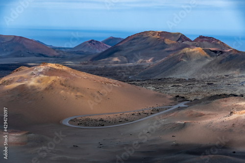 Fototapeta premium volcano in island landscape with a road, sea and sky