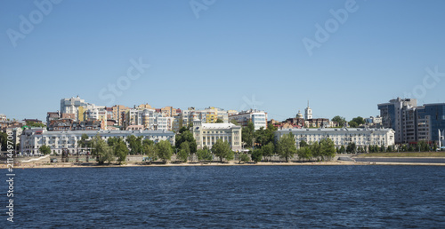 © butenkow, Fototapeta premium Volga river embankment in Samara, Russia. Panoramic view of the city. On a Sunny summer day. 28 June 2018