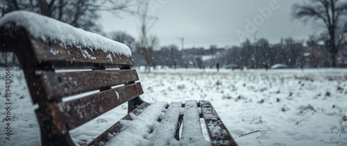 © The 2R Artificiality, Obraz premium Volgograd, Russia: Park bench blanketed with snow post-snowstorm