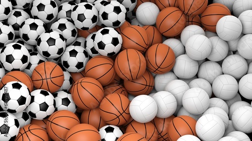 © viperagp, Fototapeta premium Volleyball, basketball and soccer balls piled
