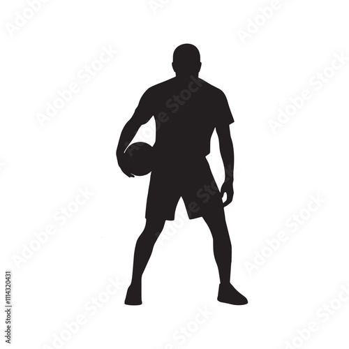 Fototapeta premium Volleyball sports player man silhouette with volleyball.