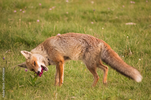 Fototapeta premium Volpe rossa mangia un'orchidea selvatica
