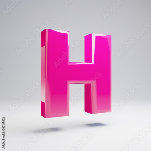 Obraz premium Volumetric glossy pink uppercase letter H isolated on white background.
