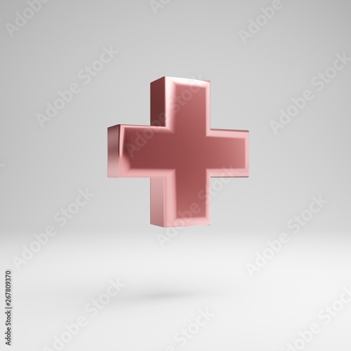 Fototapeta premium Volumetric glossy Rose Gold plus symbol isolated on white background.