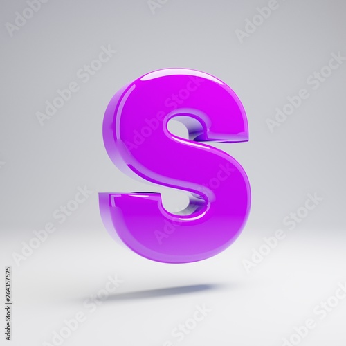 © Whitebarbie, Naklejka premium Volumetric glossy violet uppercase letter S isolated on white background.
