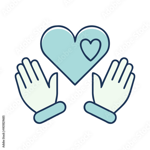 Obraz premium Volunteering heart and hands icon, support and kindness symbol